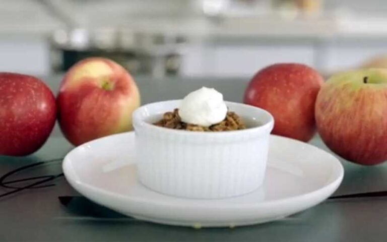 Bake for 40-45 minutes. Check for doneness by the golden color of the topping and if you hear a bubbling sound from the apples.